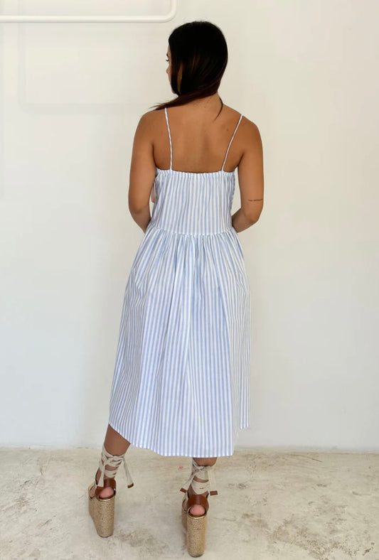 OfertaVESTIDO MIDI A RAYAS AZUL