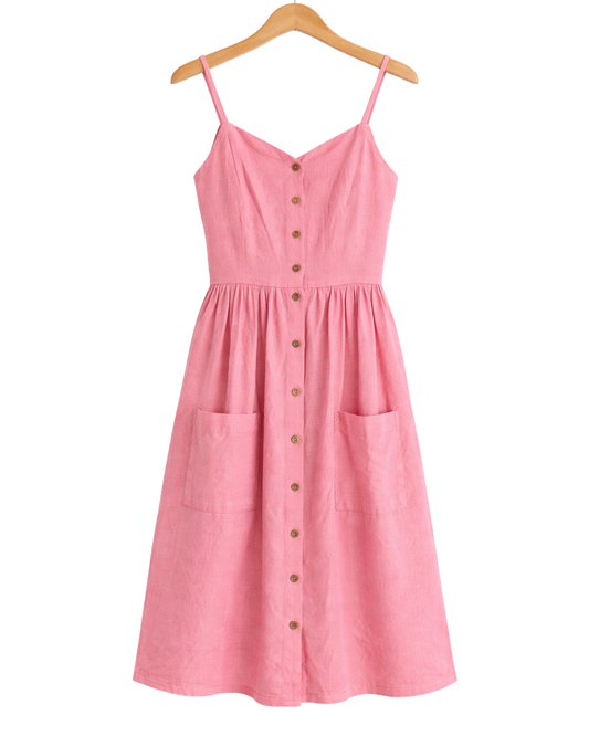 LINEN DRESS WITH PINK BUTTONS