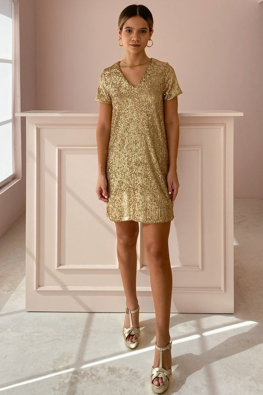 V NECK SEQUIN DRESSES