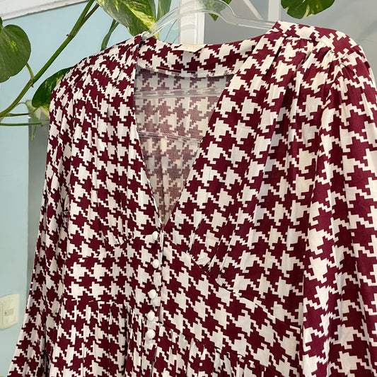 WINE HOUNDSTOOTH SHORT DRESS