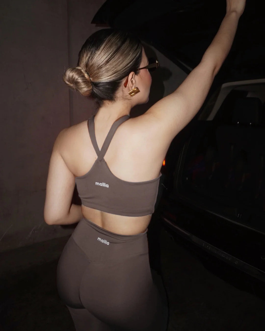 Set deportivo incluye top en “X” con tirantes cruzados y legging
