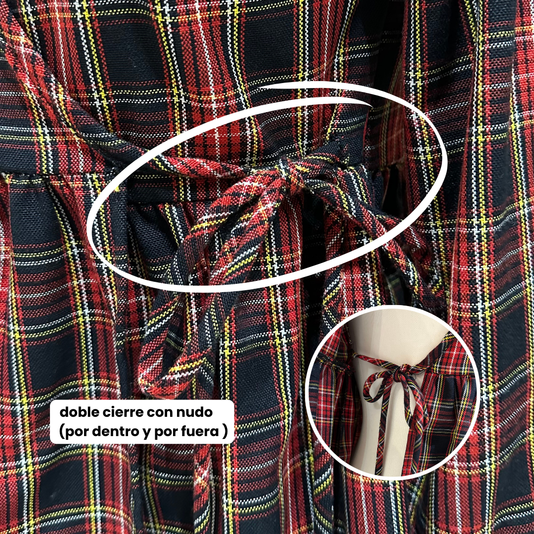 >>> Vestido mana larga con print tartan perfecto para esta temporada. Esta prenda cuenta con doble nudo de cierre para brindar un cómodo ajuste. Es necesario lavar