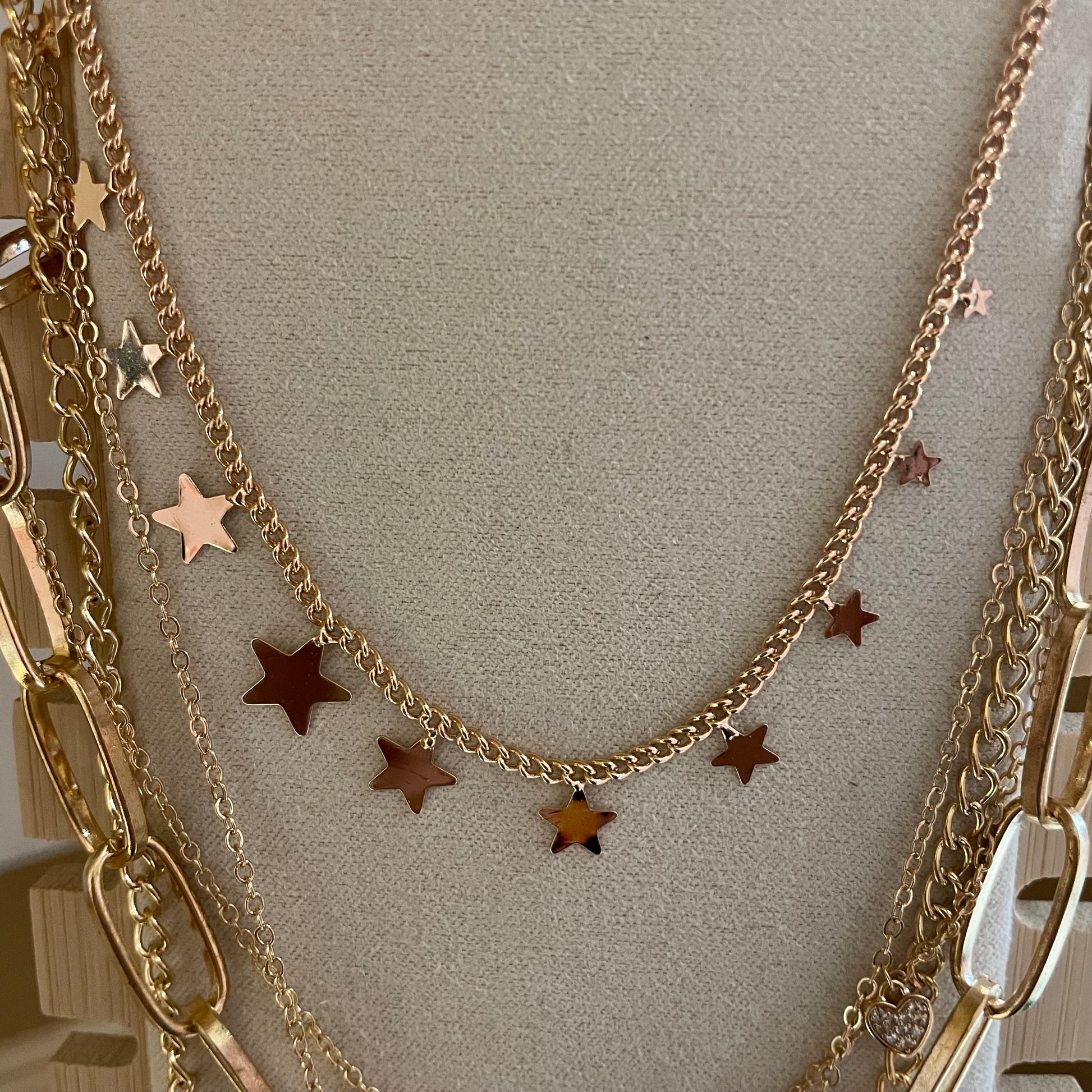 Collar con un diseño moderno con dijes en en forma de estrellas. Un accesorio versátil que eleva cualquier look.